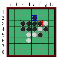 繰り返し言いますが、オセロは打てる箇所数が多いほど有利になりやすいゲームであり、